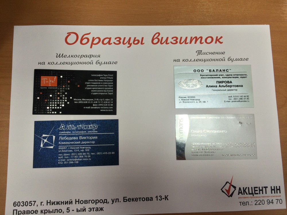 Компания "Альтаир НН" с 2006 года прочно занимает позицию на рынке полиграфических услуг, бизнес-сувениров и производства рекламной продукции. Наличие современного оборудования и профессионализма позволяет получить продукцию высокого качества по доступной цене. Для нас важен каждый заказчик, поэтому мы всегда находим оптимальное решение и подход к выполнению поставленной задачи.